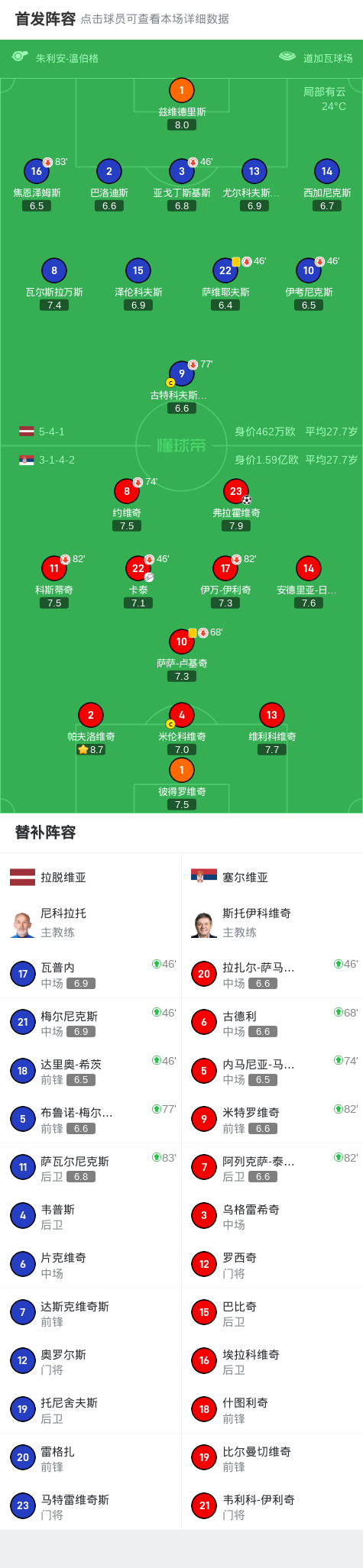 01月 14 2026 0 塞尔维亚1-0拉脱维亚,弗拉霍维奇一锤定音 xiaoqiao 2026-01-14 意甲 40 北京时间9月6日世界杯欧洲区预选赛 第一阶段小组赛 第5轮,拉脱维亚对阵塞尔维亚。塞尔维亚弗拉霍维奇破门。最终比分拉脱维亚 0-1 塞尔维亚。精彩瞬间第12分钟,塞尔维亚球员卡泰助攻弗拉霍维奇打入一球。球队阵容技术统计